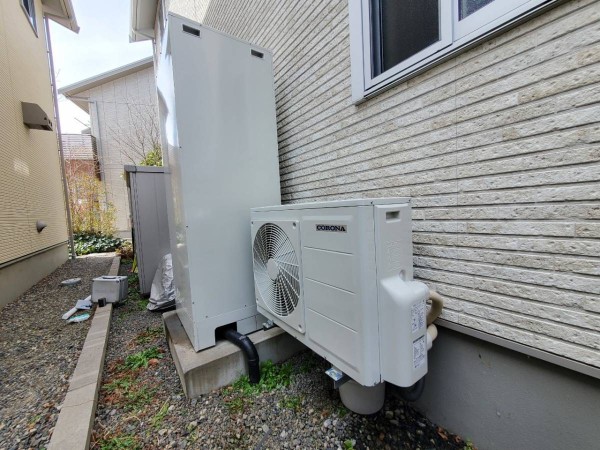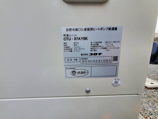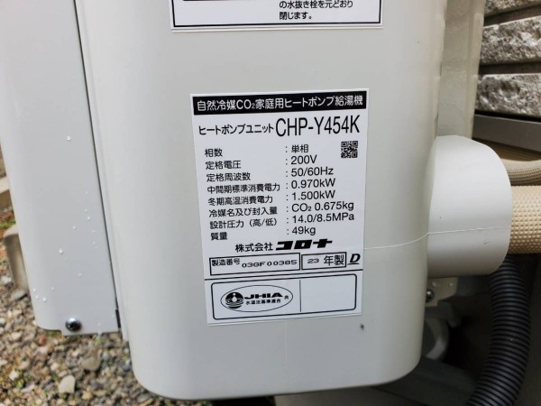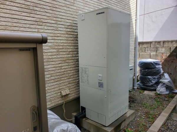 江田島市樋守 コロナ自然冷媒CO2家庭用ヒートポンプ給湯機 貯湯ユニットCTU-37AY5K、ヒートポンプユニットCHP-Y454K エコキュート交換工事