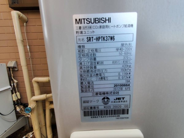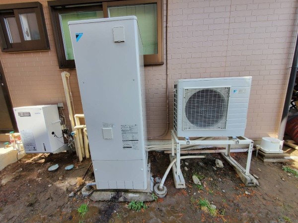 東広島市西条本町 三菱電機エコキュート→ダイキン自然冷媒(CO2)・家庭用ヒートポンプ給湯機 貯湯ユニット、ヒートポンプユニットRQW45WHVエコキュート交換工事