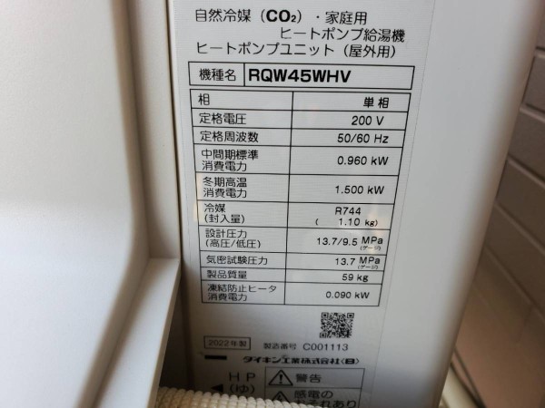 東広島市西条本町 ダイキン自然冷媒(CO2)・家庭用ヒートポンプ給湯機 貯湯ユニット、ヒートポンプユニットRQW45WHVエコキュート交換工事