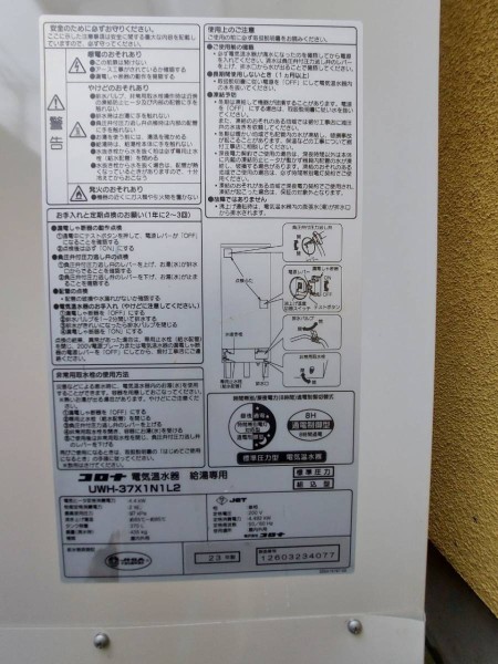廿日市市玖島 コロナ電気温水器 給湯専用 CTU-37X1N1L2 エコキュート交換工事