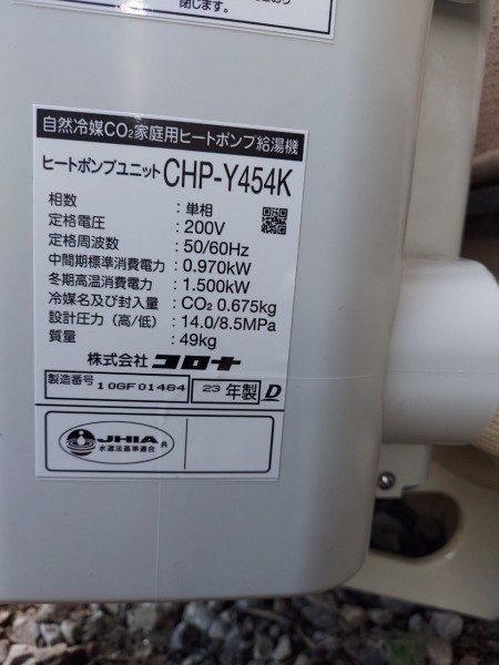 トップページ > 工事事例一覧 > 東広島市鏡山北 コロナ自然冷媒CO2家庭用ヒートポンプ給湯機貯湯ユニットCTU-37AY5K、ヒートポンプユニットCHP-Y454K エコキュート交換工事