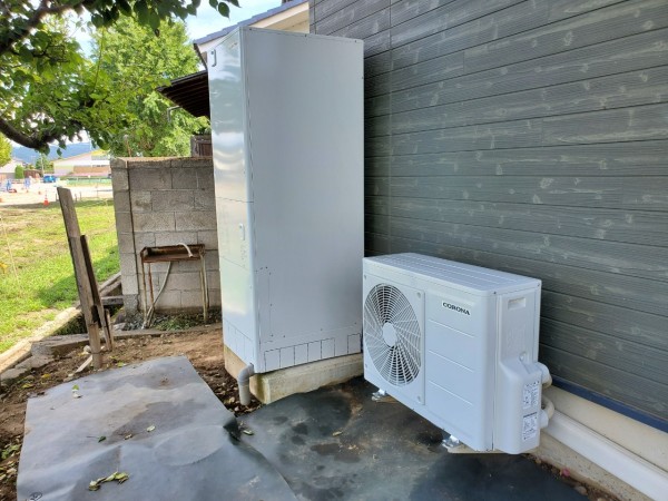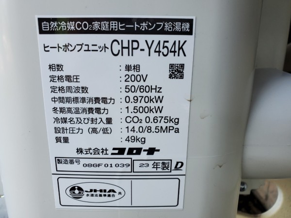 江田島市大柿町小古江 コロナ自然冷媒CO2家庭用ヒートポンプ給湯機 ヒートポンプユニットCHP-Y454K エコキュート交換工事