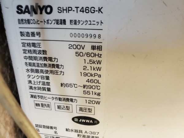 大竹市玖波町 SANYOエコキュート→コロナ自然冷媒CO2家庭用ヒートポンプ給湯機ヒートポンプユニットCHP-Y454K エコキュート交換工事