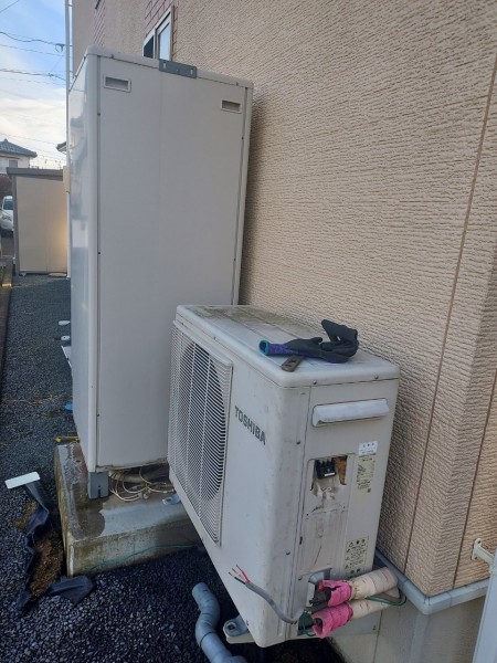 大竹市安条 東芝エコキュート→コロナ自然冷媒CO2家庭用ヒートポンプ給湯機ヒートポンプユニットCHP-Y454K、貯湯ユニットCTU-37AY5K エコキュート交換工事