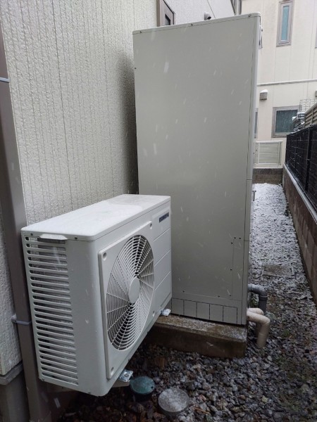 大竹市玖波町 コロナ自然冷媒CO2家庭用ートポンプ給湯機貯湯ユニットCTU-E37AY5K エコキュート交換工事