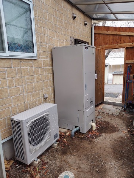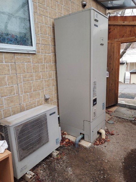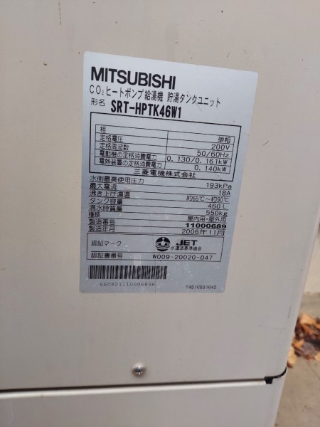 尾道市潮見町 三菱電機エコキュート→三菱電機自然冷媒CO2家庭用ヒートポンプ給湯機貯湯ユニットSRT-STK376D、ヒートポンプユニット エコキュート交換工事