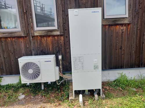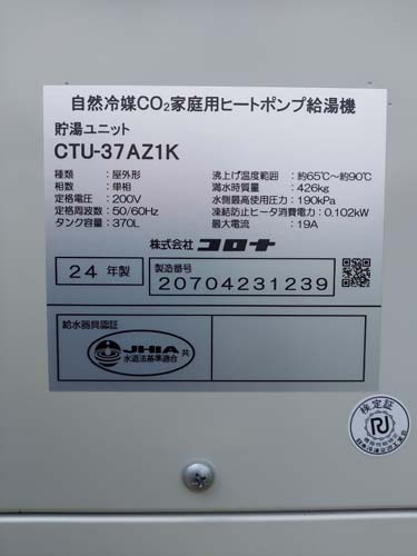 江田島市樋守 コロナ自然冷媒CO2家庭用ヒートポンプ給湯機 貯湯ユニットCTU-37AZ1K、ヒートポンプユニットCHP-DZ451Kエコキュート交換工事