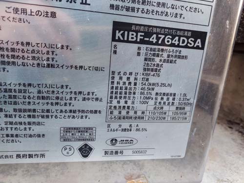 呉市押込町 長府製作所給湯器KIBF-4764DSA→コロナ自然冷媒CO2家庭用ヒートポンプ給湯機ヒートポンプユニットCHP-DZ601K エコキュート交換工事