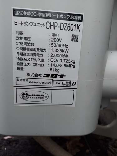 呉市押込町 コロナ自然冷媒CO2家庭用ヒートポンプ給湯機ヒートポンプユニットCHP-DZ601K エコキュート交換工事|広島県のエコキュート専門交換工事店|広島エコキュート交換ショップ補助金対応可能