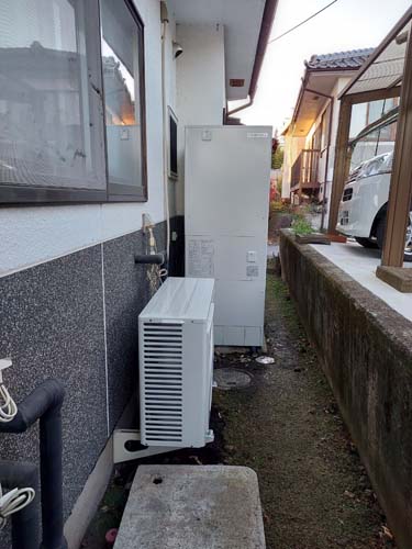 トップページ > 工事事例一覧 > 呉市押込町 コロナ自然冷媒CO2家庭用ヒートポンプ給湯機ヒートポンプユニットCHP-DZ601K エコキュート交換工事