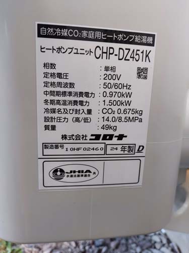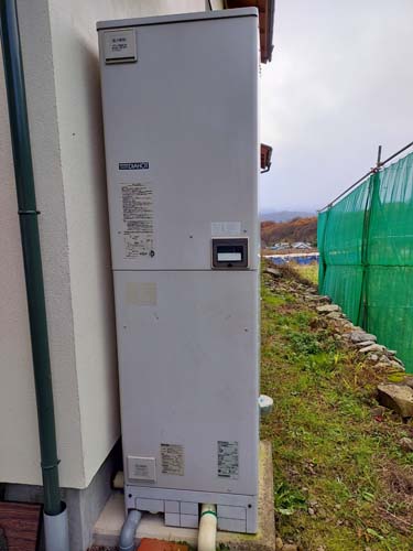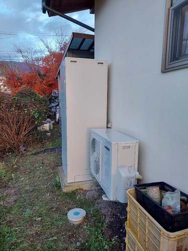 トップページ > 工事事例一覧 > 呉市朝日町 コロナ自然冷媒CO2家庭用ヒートポンプ給湯機貯湯ユニットCTU-37AZ1K、ヒートポンプユニットCHP-DZ451K エコキュート交換工事