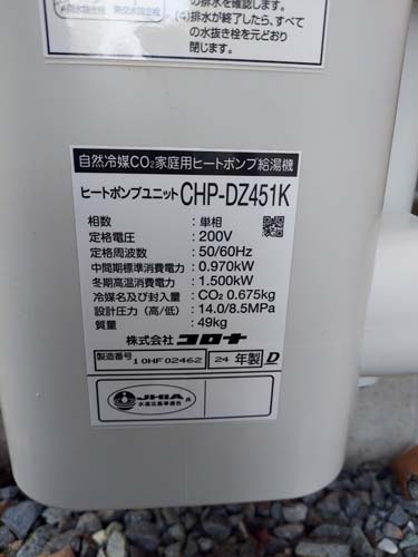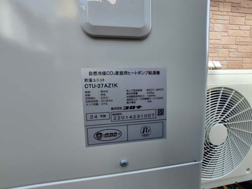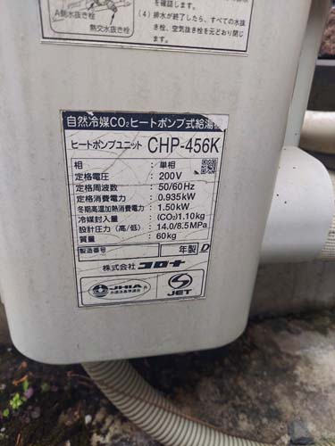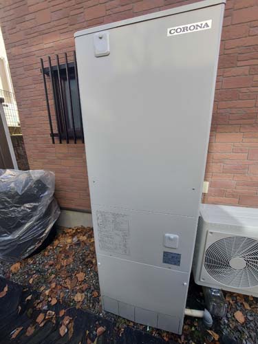 尾道市潮見町 コロナ自然冷媒CO2家庭用ヒートポンプ給湯機 ヒートポンプユニットCHP-456K→コロナ自然冷媒CO2家庭用ヒートポンプ給湯機貯湯ユニットCTU-37AZ1K、ヒートポンプユニットCHP-DZ451K エコキュート交換工事