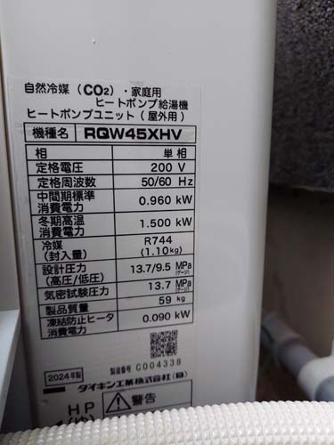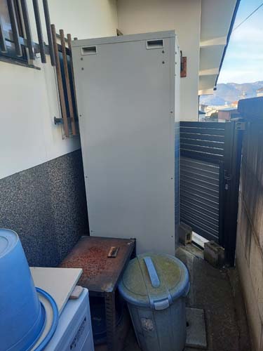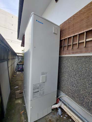 尾道市久保町 コロナ自然冷媒CO2家庭用ヒートポンプ給湯機 ヒートポンプユニットCHP-458K→ダイキン工業自然冷媒CO2家庭用ヒートポンプ給湯機貯湯ユニットTU37XFHV、ヒートポンプユニットRQW45XHV エコキュート交換工事