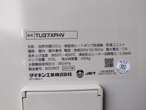 尾道市久保町 ダイキン工業自然冷媒CO2家庭用ヒートポンプ給湯機貯湯ユニットTU37XFHV、ヒートポンプユニットRQW45XHV エコキュート交換工事
