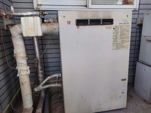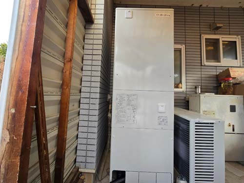 尾道市因島重井町伊浜 ノーリツ給湯器OTX-3102AY→コロナ自然冷媒CO2家庭用ヒートポンプ給湯機 ヒートポンプユニットCHP-DZ451K エコキュート交換工事